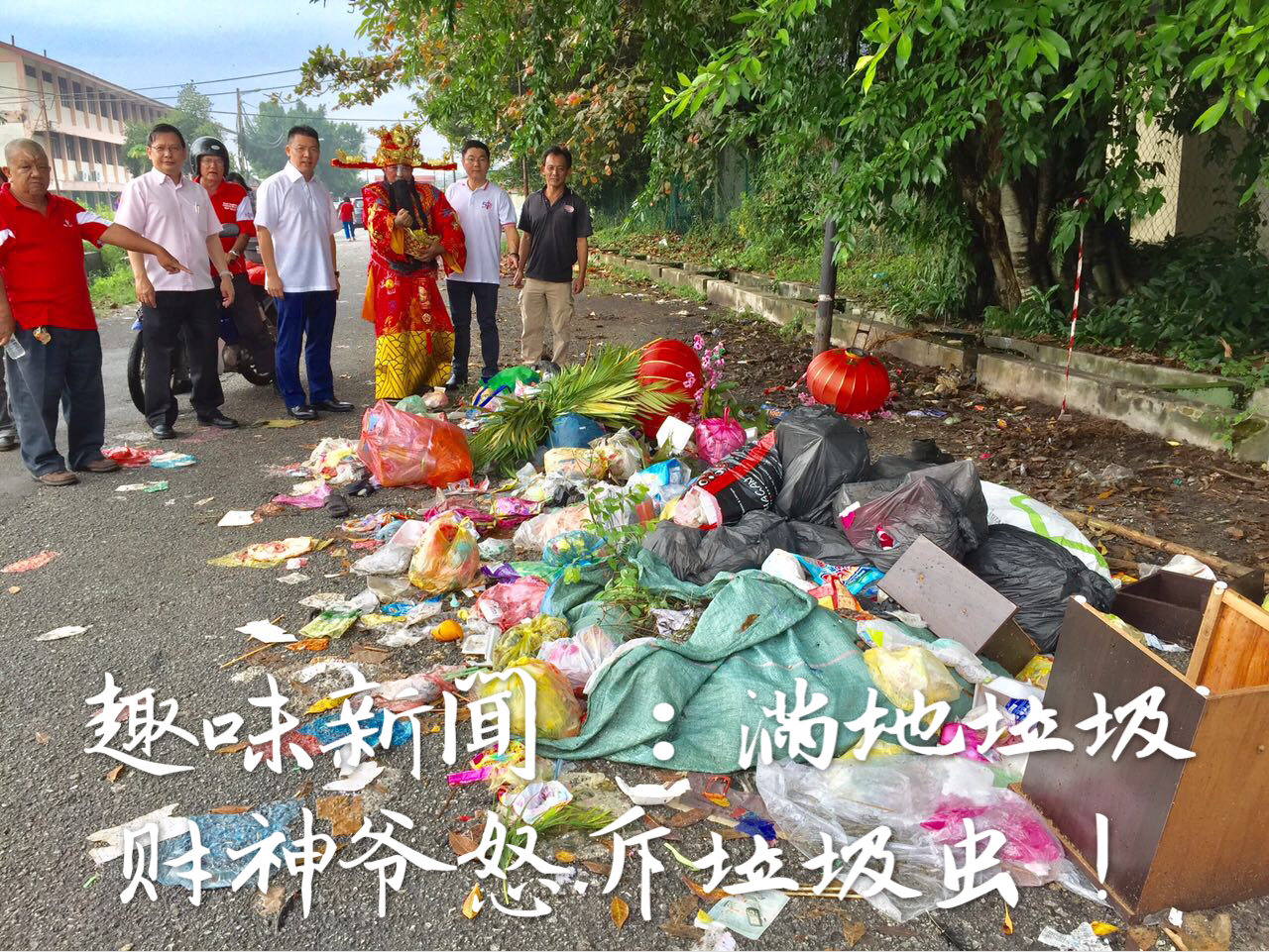 趣味新闻 :滿地垃圾 财神爷怒斥垃圾虫!