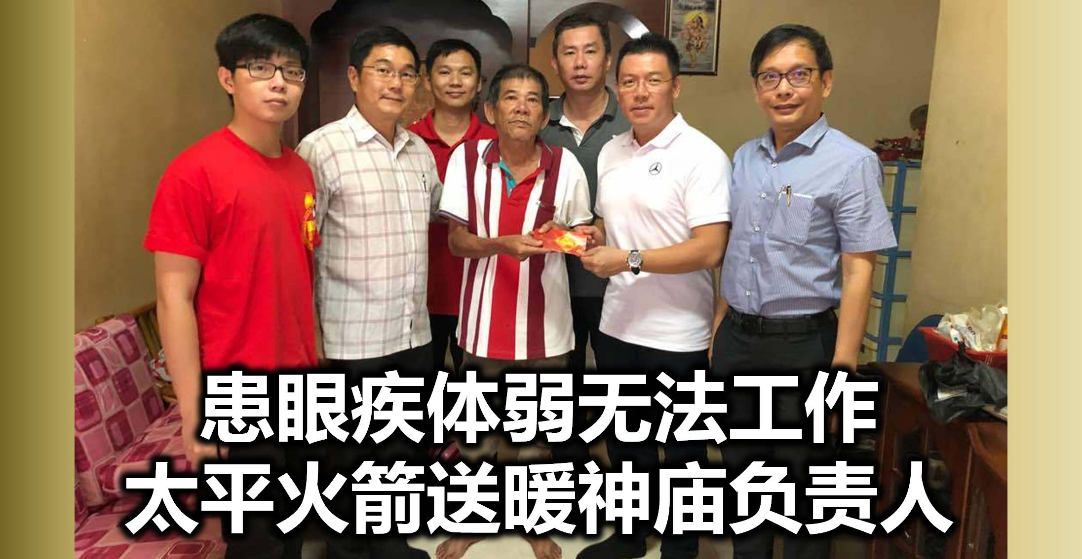 患眼疾体弱无法工作,太平火箭送暖神庙负责人。