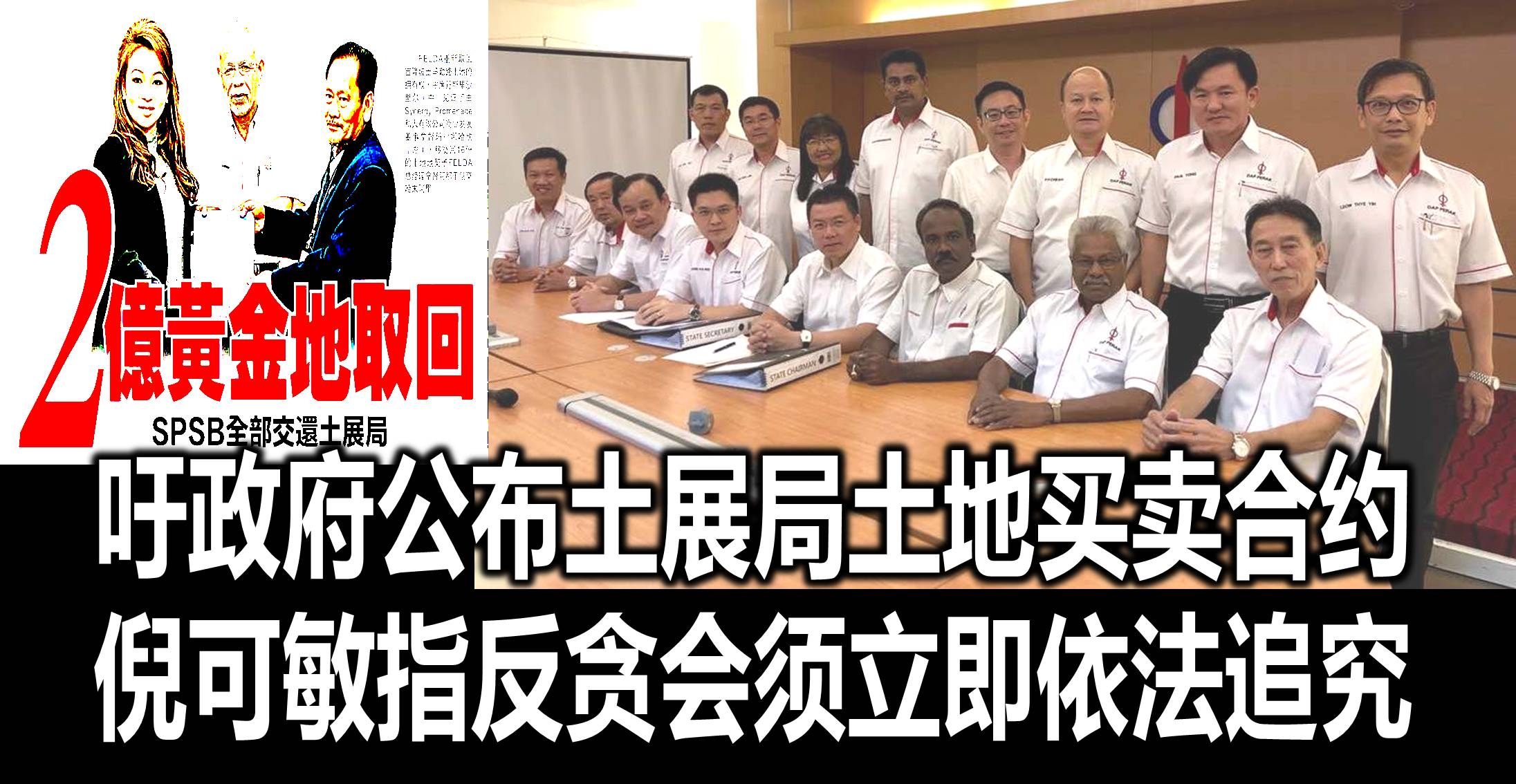 也是太平区国会议员的倪可敏今日率领该党多名国州议员召开新闻发布会上指出,联邦土地发展局FELDA脱售市值十亿令吉位于首都士马勒路的16塊地段却没有收到钱的丑闻曝光后已经震惊全国,任何涉及这种变卖国家资产以自肥的人士必须受到法律的制裁,否则我国法冶将荡然无存、国家也必然步上灭亡的道路。