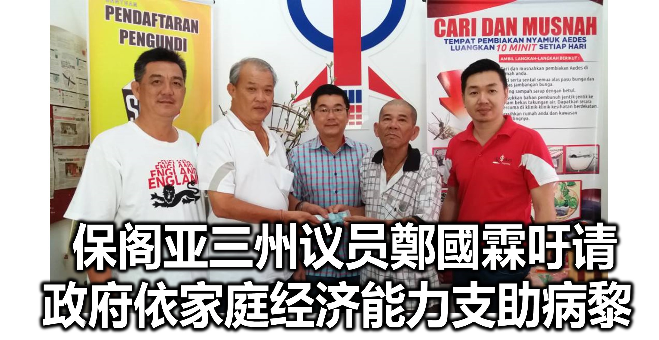 保阁亚三州议员鄭國霖吁请福利部与医院密切配合,擬定更具创意及伸缩的制度,以病患者的家庭经济实况给予更实际的医疗费用援助。