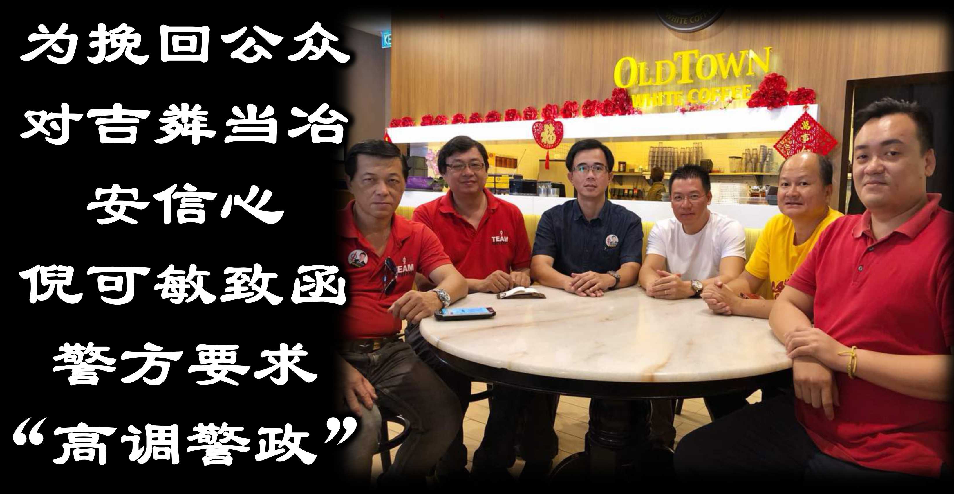 基于近来怡保首要商业中心吉粦当(Greentown Business Centre)竊劫案频频发生,为了挽回公众对冶安的信心及保护当地商家顾客的财物,行动党甲巴央区州议员倪可敏今日亲自致函新上任的怡保警区主任莫哈末阿里要求警方在当地即刻起展开“高调警政”(High Profile Policing)运动以稳定民心!