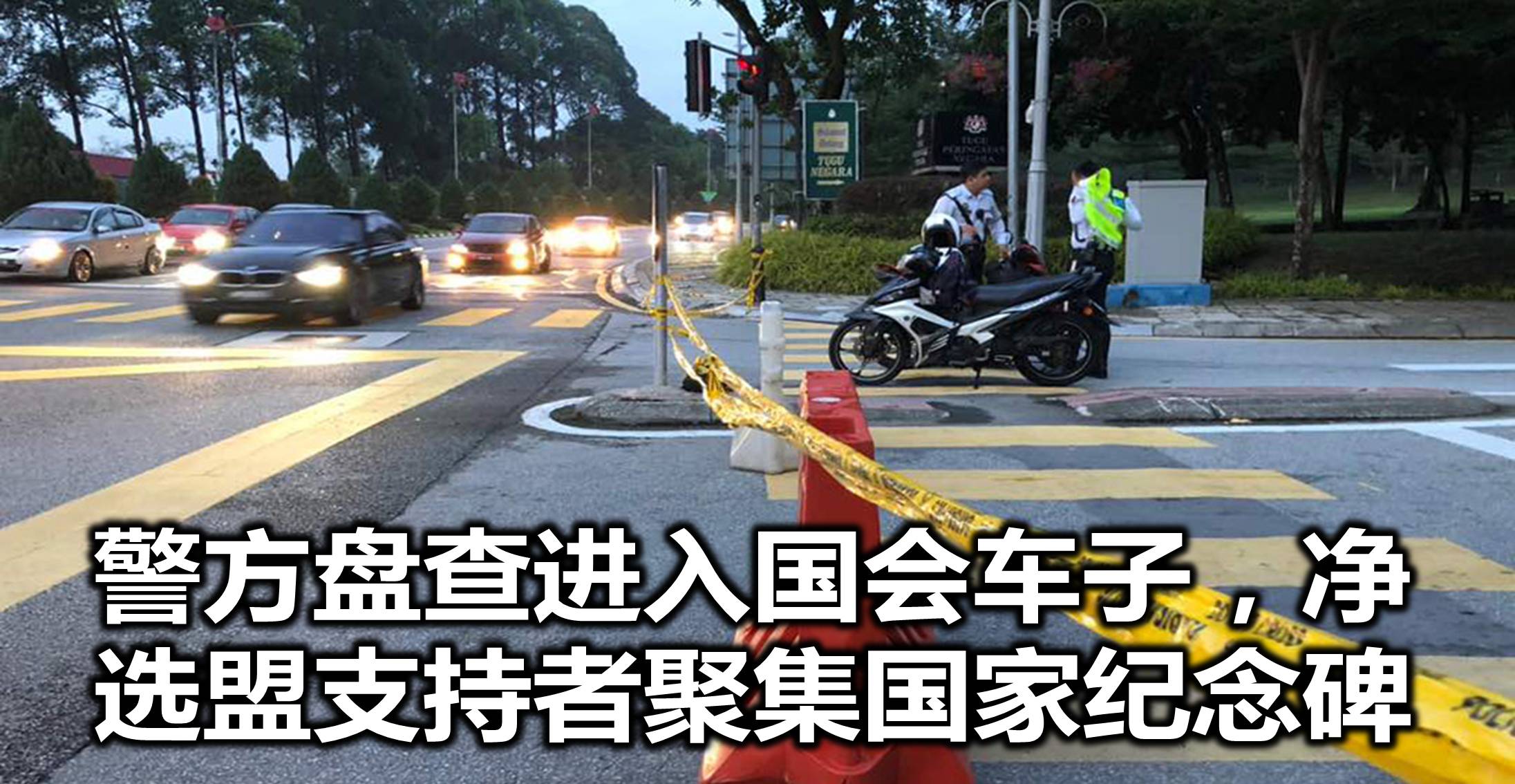 早上8时15分-Jalan Parliament警方在早上7时开始设置路障,盘查进入国会的车子。警方在双向的道路上,封锁其中一条通道,只保留来回各一条道路通行。一些净选盟支持者聚集在国会大门400米以外的地方。