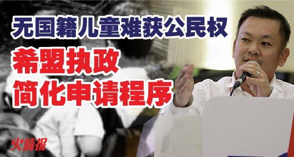 屈辱地、卑微地渴望解决深刻影响其人生的公民权事宜。他表示,一旦入主布城,希盟政府将会简化无国籍儿童申请公民权的程序,以归还他们一个有尊严的人生。斯里丹绒区州议员陈泓缣,今天中午出席亚庇区国会议员黄仕平召开的记者会上如此表示。黄仕平在今季国会中,继续跟进此无国籍儿童问题。有鉴于此问题关乎三十万人,陈泓缣也特地为此声援。