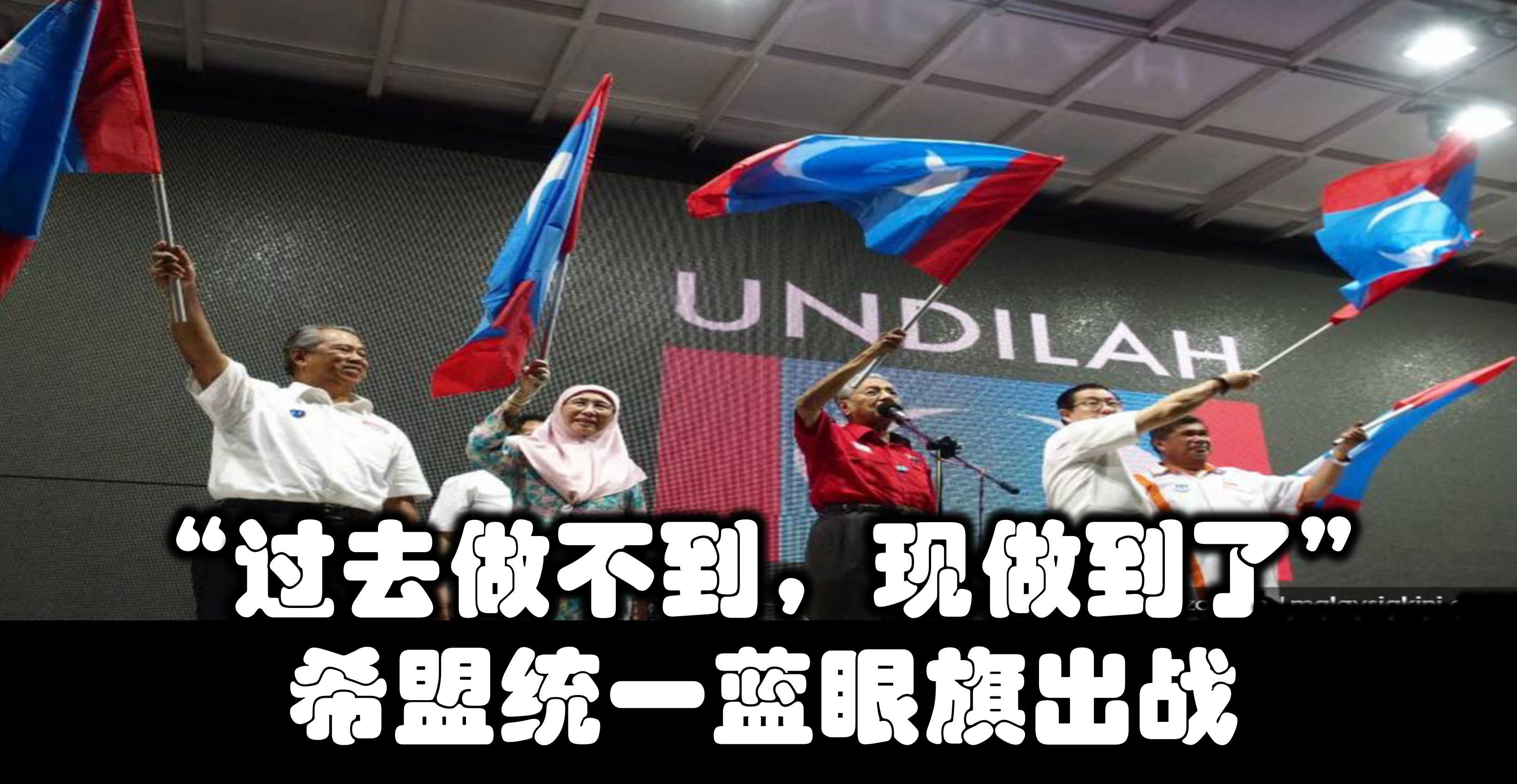 就如昨天所承诺,希盟总裁马哈迪正式宣布,希盟四党将统一旗帜出战大选,而这面旗不出众人所料就是:公正党的“蓝眼”标志。马哈迪今晚10点在柔佛巴西古当的希盟讲座上上台演讲。