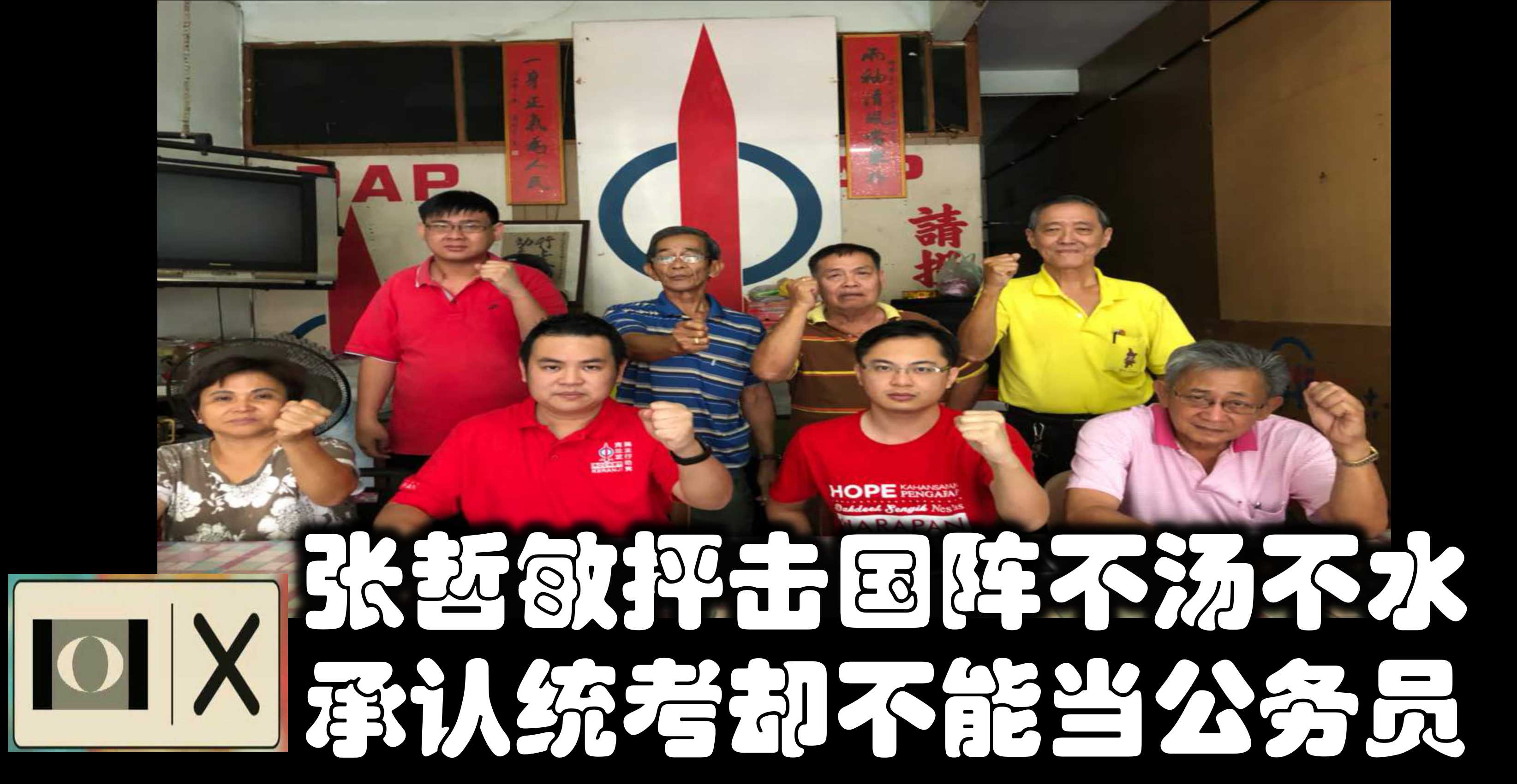 有浑水摸鱼之嫌。他说国阵承认统考除了必须符合SPM国文优等也必须历史科及格,诸多限制对统考生造成不便。也是霹雳行动党宣传局主任的张哲敏表示相对于希望联盟的只要SPM国文优等便全面承认统考,包括可以进入国立大学就读和申请成为公务员,国阵的这项承诺显得落伍。他促请马华民政向全国华社给予一个交代,就连国阵执政的砂捞越也可以承认统考成为公务员。