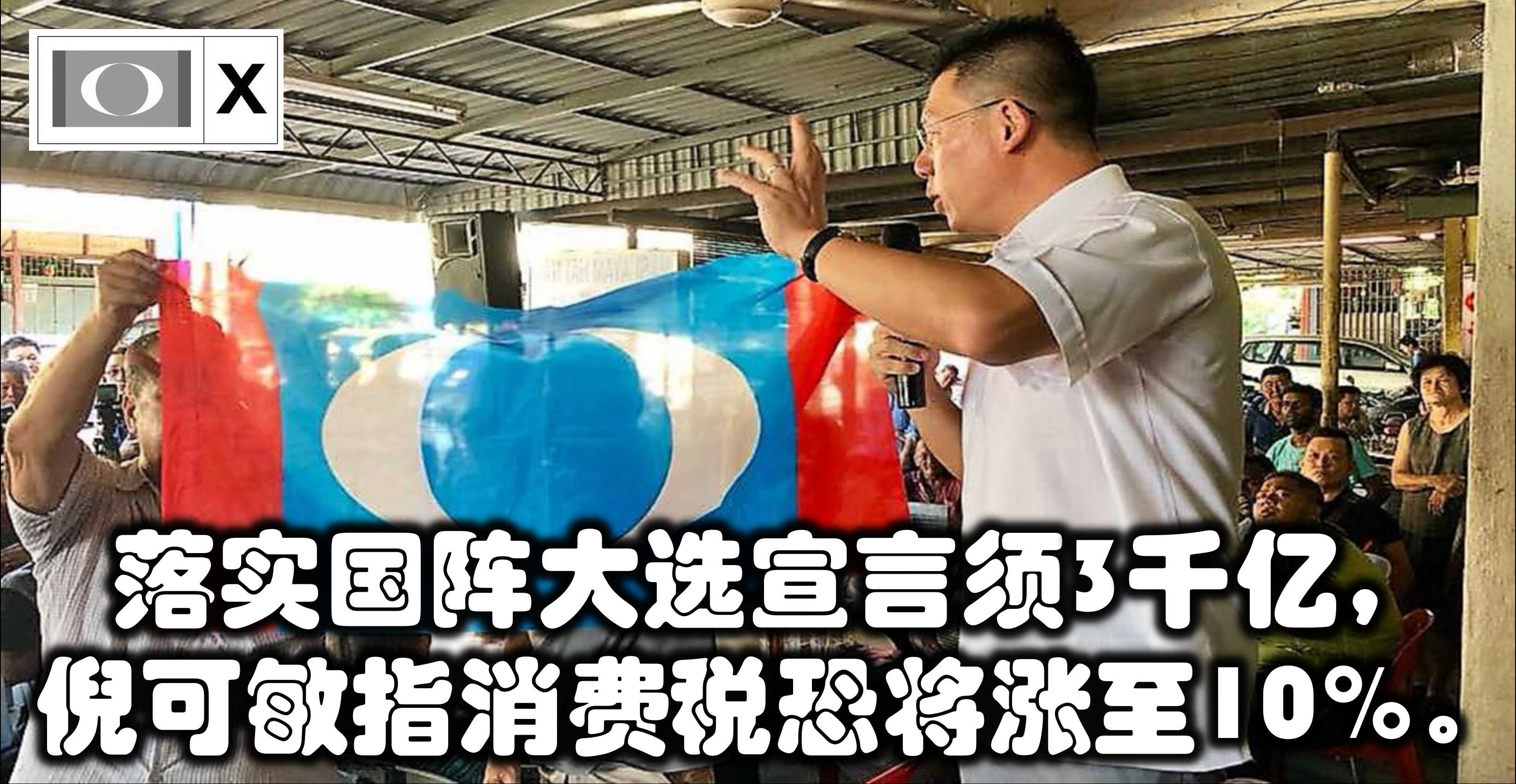 霹雳州行动党主席倪可敏今日指出,根据前首相敦马哈迪估计,若要落实国阵大选宣言,预计将须耗资3000亿令吉、因此有理由相信如果国阵胜出,大选后消费税将从6%调高至10%!!