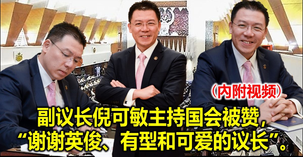 (吉隆坡31日讯)国会下议院副议长倪可敏可谓是今天最得意的人,早上主持议会时,获得不少议员的赞美。数名反对党议员在发问之前也不忘称赞倪可敏,其中巫统瓜拉吉赖区国会议员拿督斯里依斯迈向卫生部提问附加问题时说:“谢谢英俊、有型和可爱的议长。”一如既往,倪可敏在开始主持议会时会先念一首马来诗“暖场”,获得在场国会议员好评连连。