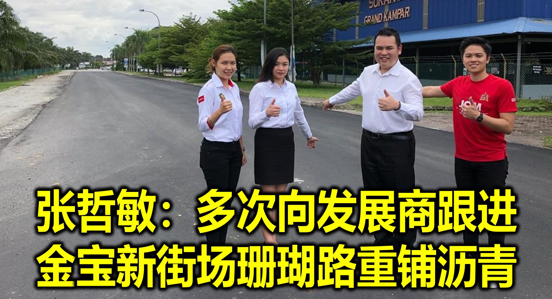 (金宝16日讯)金宝新街场珊瑚路(Jalan Batu Karang)重铺了!由于发展商在珊瑚路尾端兴建公寓,发展商的罗里和重型车辆长期使用该条马路导致马路被破坏,破损不堪。金宝克兰芝州议员张哲敏表示经过行动党克兰芝服务队在过去一个月透过金宝县议会向发展商不断跟进后,发展商终于修补该条马路,重铺沥青。