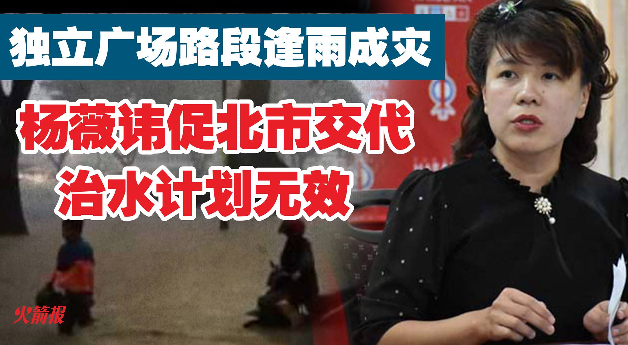 民主行动党朋岭区州议员杨薇讳呼吁古晋北市向人民做出交代,为何耗资至少850万令吉在古晋独立广场一带的治水工程无法有效发挥作用,造成每逢一下起大雨时,中央广场的路段依然被水淹没,无法通车?她进一步说,古晋北市当时表明,如果要有效解决古晋独立广场及老巴刹一带多年来的闪电水灾问题,必须在该一带展开改善沟渠排水系统工程,好让水势能够被舒缓且即刻被排出到砂拉越河。