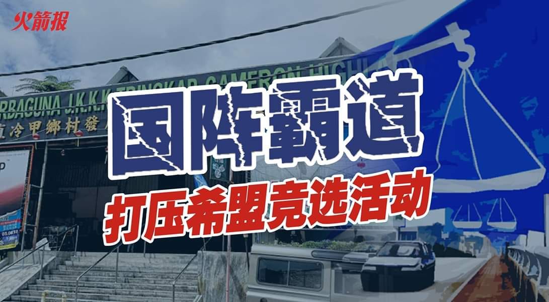 国阵霸道,我们都知道。即使509换了中央政府,国阵依然没有悔改。通过村委会打压希盟的竞选活动。原定在明晚举办的希盟筹款晚宴,早在一个星期前就已经预订了礼堂,昨晚却被村委会告知不能租用,理由竟然是“不能举办含有政治性的活动”。该礼堂是村民十多年前一砖一瓦筹建起来的,是公共资产,并不是国阵的私有党产,为什么不能给希盟举办活动?