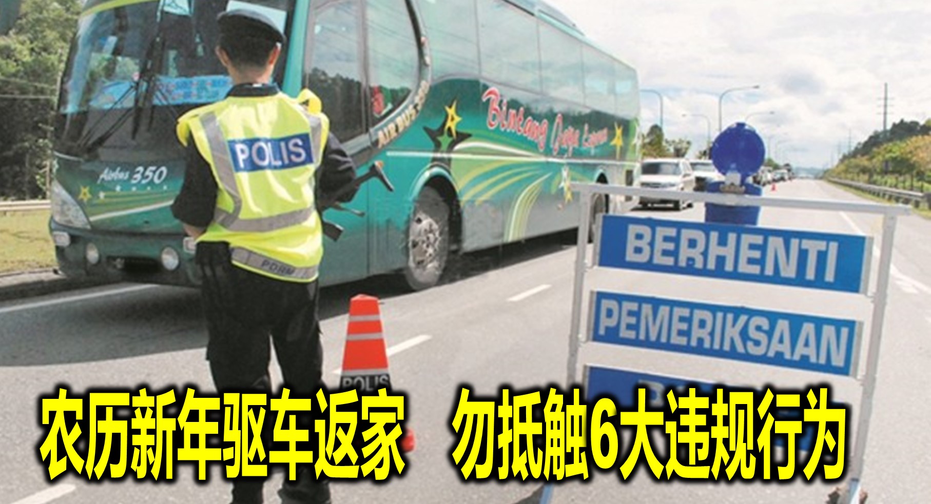 农历新年驱车返家乡期间,勿抵触6大违规行为!一遭警方取缔,即场收到300令吉「牛肉乾」(交通罚单)!雪州交通调查及执法组主任阿兹曼警监在今日接受《东方日报》採访时指出,全国交警在从1月29日至2月12日,展开为期12天的「安全行动14」期间,將针对6项交通违规行为重点取缔。