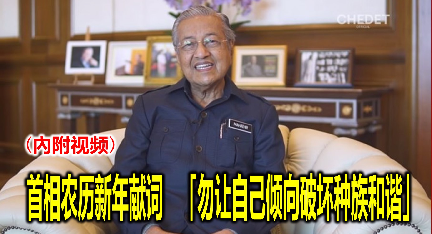他促国人不让自己倾向於破坏种族和谐这一方,让我们同心协力维护国家的和平及安寧。马哈迪也指出,在这段开心的节日,希望国人不忘拜访华人新年的开放门户,共同欢庆佳节,藉此机会进一步加强在各友族之间的团结。值得一提的是,在视频的最后段,首相更以华语「新年快乐!恭喜恭喜!」向国人贺年。