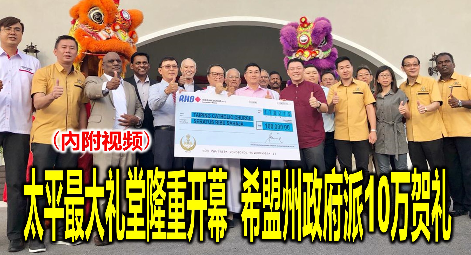 (太平 22 日讯)太平区最大社区礼堂今天正式开幕!拥有愈百年历史的全国第一间天主教堂圣路易斯 St. Louis 多元用途礼堂今天隆重开幕,希盟州政府拨10万令吉大红包当贺礼!已经列入国家文化遗产的圣路易斯天主教堂建于19世纪,经过多年的努力和筹备下,
