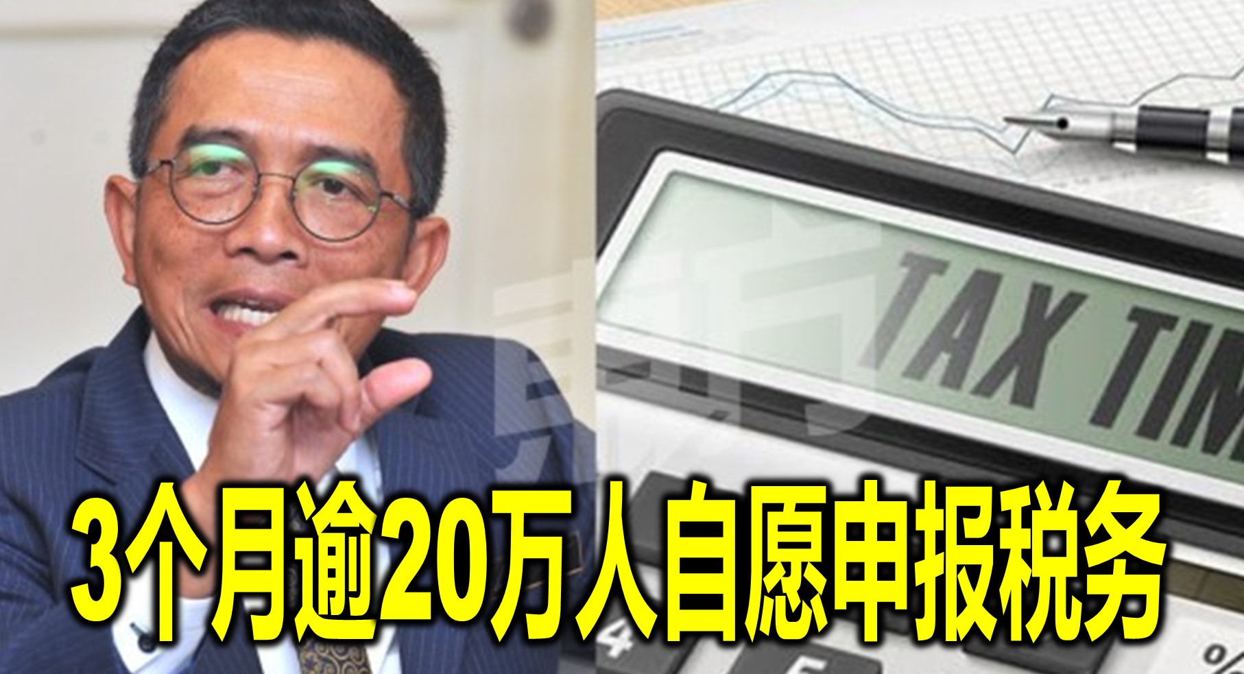 內陆税收局副首席执行员(税务营运)拿督莫哈末尼尊表示,从2018年11月3日至今,有超过20万人在「自愿申报税务特別计划」下进行自愿申报。他说,这20万的数目涵盖了所有的类別,包括企业、个人的纳税。他透露,內陆税收局当初原本预计有100万人前来自愿申报,但是只要应前来申报的人都来申报,即便只有50万或70万人申报,他们也感到满意。