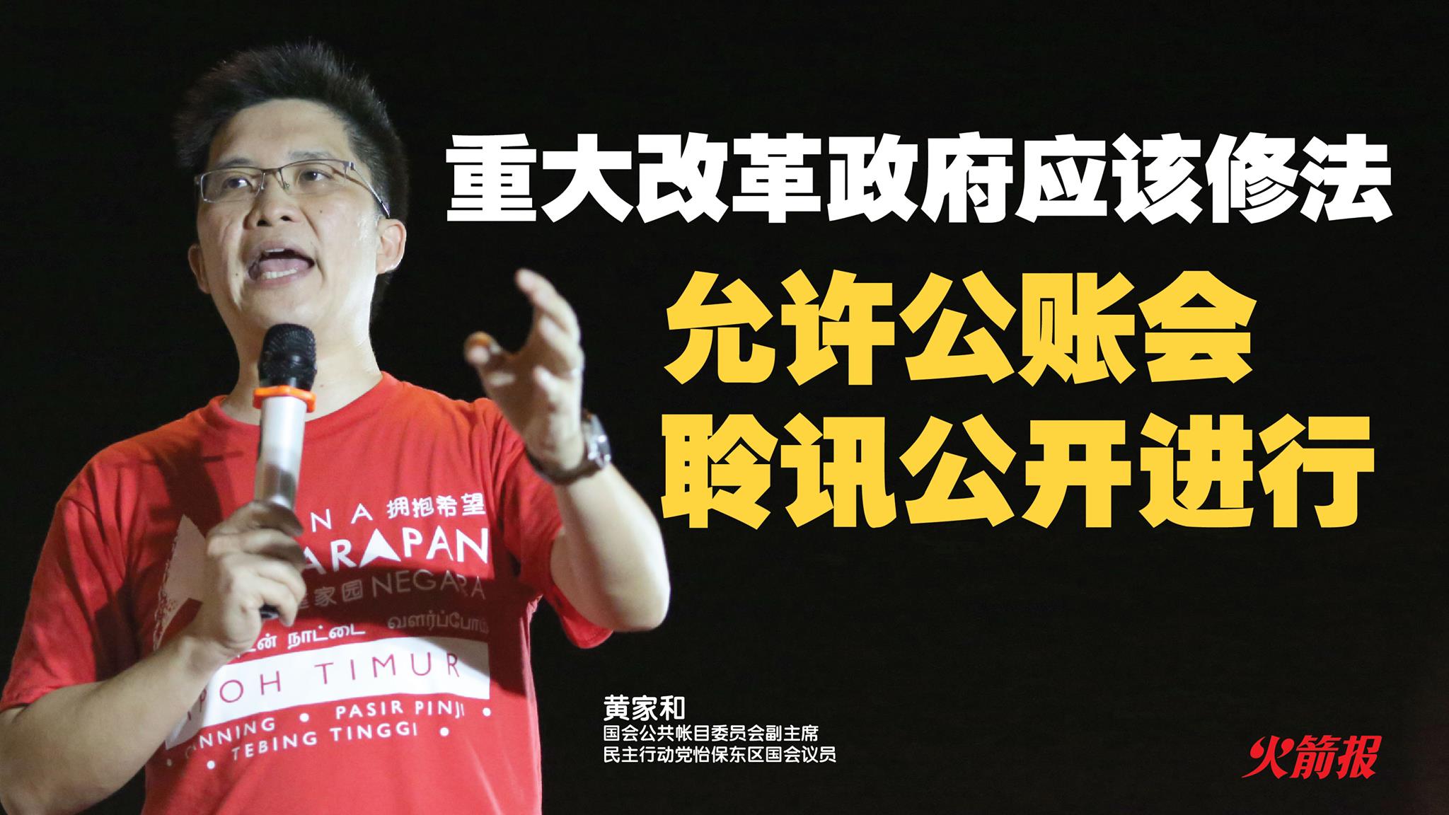 也是怡保东区国会议员的黄家和在辩论最高元首施政御词时表示,公开公账会的聆讯过程,将能够提升案件调查的透明度,而这也是民主进步国家,包括英国和澳洲国会的做法。在澳洲,公账会的聆讯过程甚至就如国会会议一样全场直播。黄家和说,在国会改革的声浪下,允许公账会聆讯过程公开,