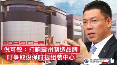 倪可敏指出,为了吸引保时捷,州政府应该推出包括地价减免的配套及提升竞争力,否则一旦让他州捷足先登,霹雳州又将失去难得的机会。