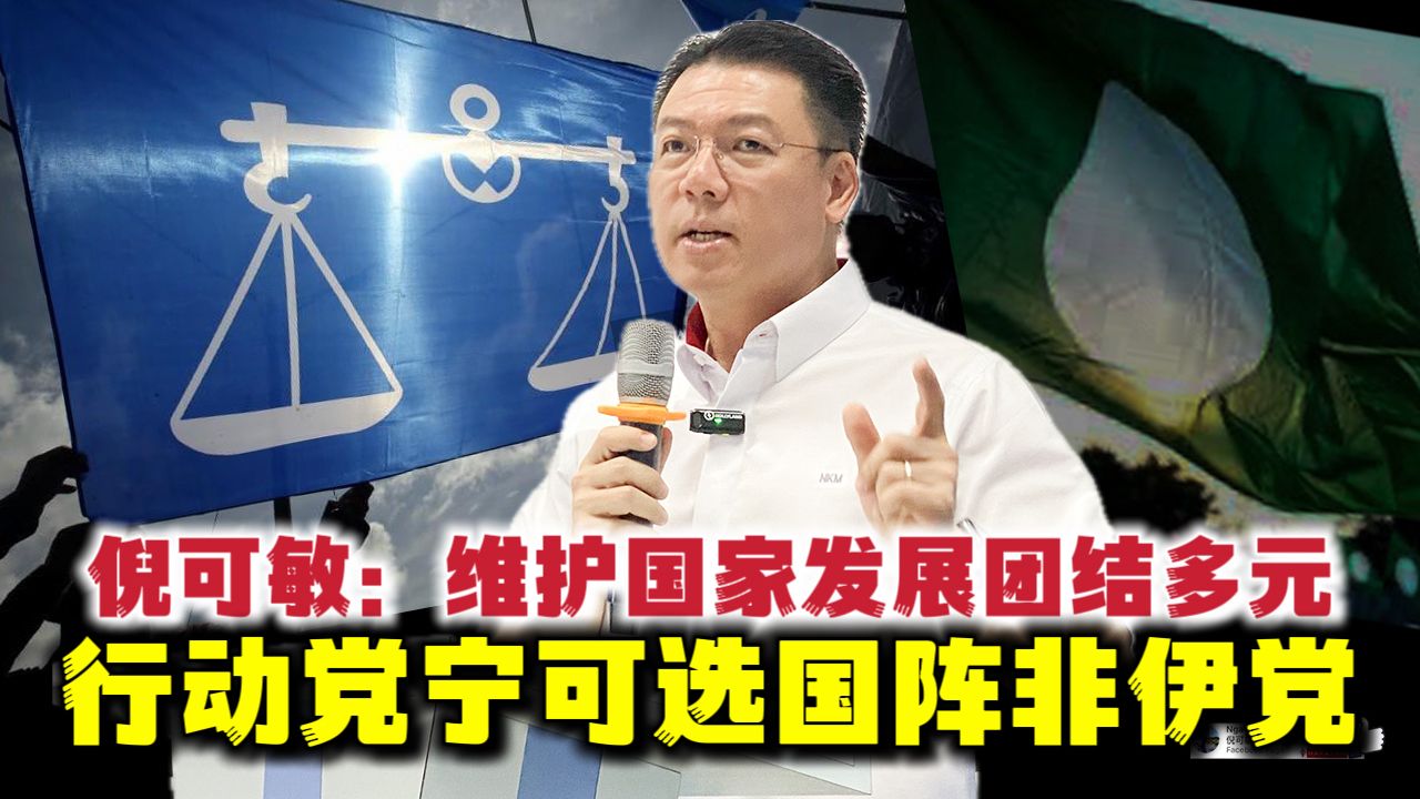 地方政府发展部长倪可敏说,尽管行动党与国阵对抗了几十年,但是为了维护国家发展、团结及多元文化,行动党必须选择国阵,而不是选择保守封闭极端的伊斯兰党,因为希盟与国阵组织团结政府,能为国家带来新气象,把国家带上繁荣进步的轨道。