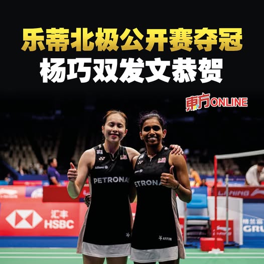 (吉隆坡12日讯)大马女双“乐蒂组合”(陈康乐/蒂娜)夺得2025年北极羽球公开赛冠军,青年及体育部长杨巧双发文祝贺。