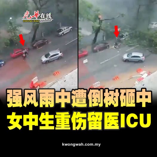 一名中五女生在10月6日放学途中,遭大树砸中后重伤,目前仍在双威医疗中心加护病房(ICU)接受治疗。