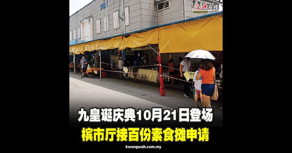 一年一度的九皇爷诞辰庆典将于10月21日至29日(农历九月初一至初九) 隆重举行,配合节庆到来,槟岛市政厅九皇爷诞素食摊位临时执照的申请已于8月28日开放,截止日期为10月28日,目前市厅已接获100份申请。