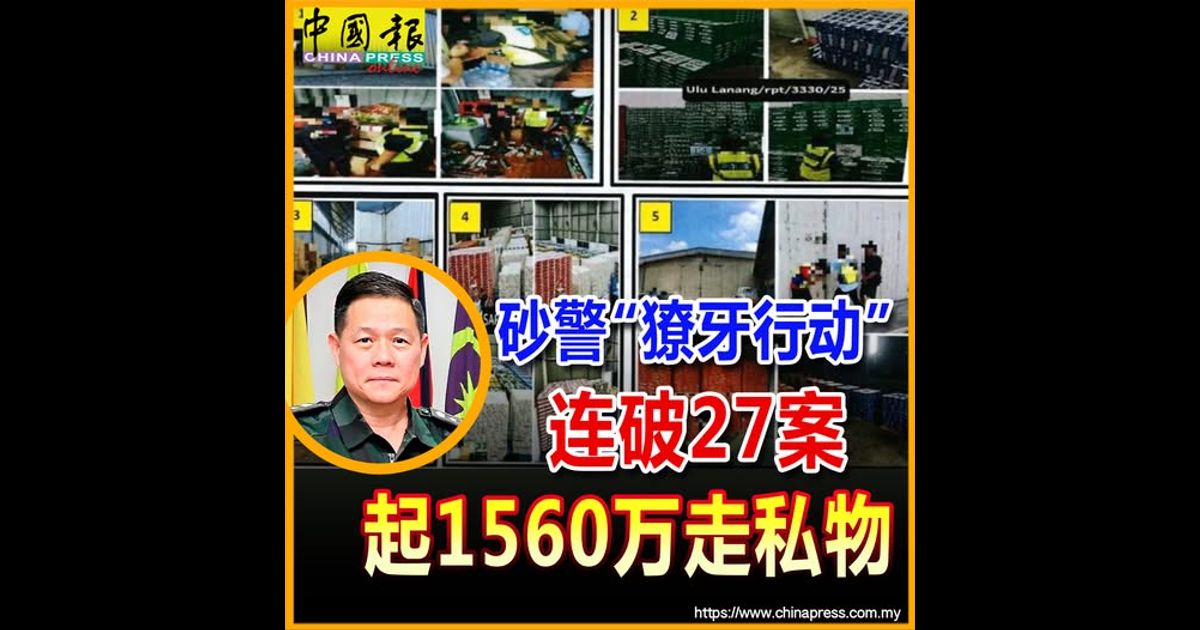 (古晋14日讯)砂拉越警察普通行动部队在为期17天的“獠牙行动”,共截获市值1560万令吉的各类走私品,包括香烟、酒精饮料、统制品、锯材及假币等。