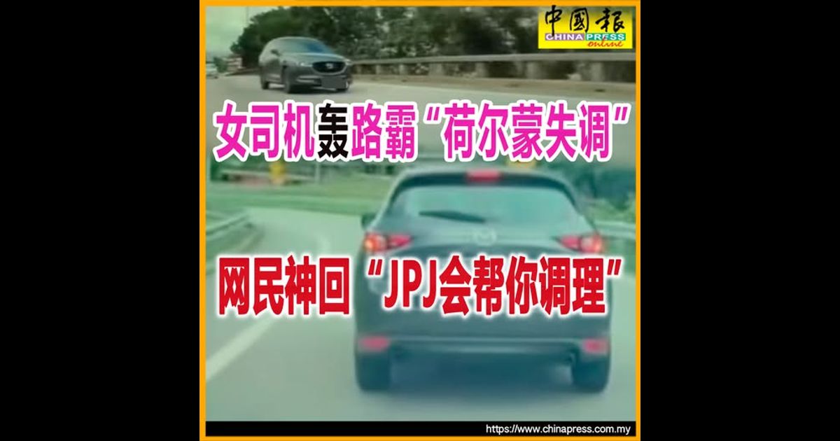(北海15日讯)女司机网上逗趣发帖轰路霸“荷尔蒙失调”;网民神回复:向JPJ举报,JPJ会帮你调理他的“荷尔蒙”!