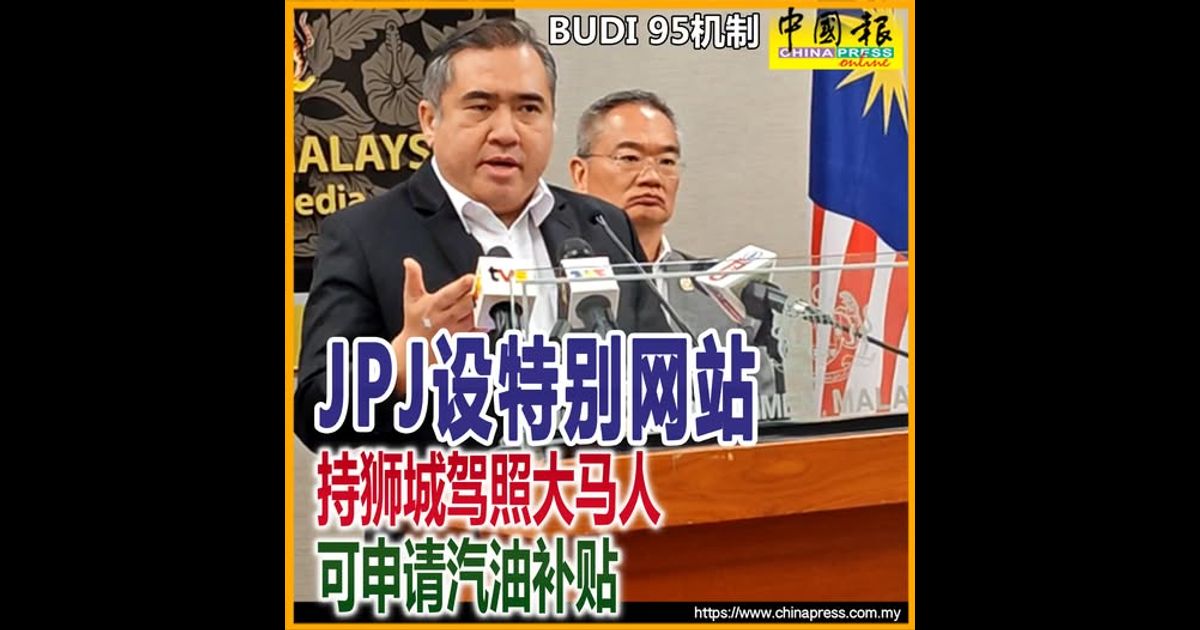 (吉隆坡15日讯)交通部长陆兆福说,交通部透过陆路交通局(JPJ)正式设立特别网站(budi95lesensg.jpj.gov.my/),供那些持新加坡驾照的大马公民申请纳入仁政昌明95汽油补贴机制(BUDI95)。