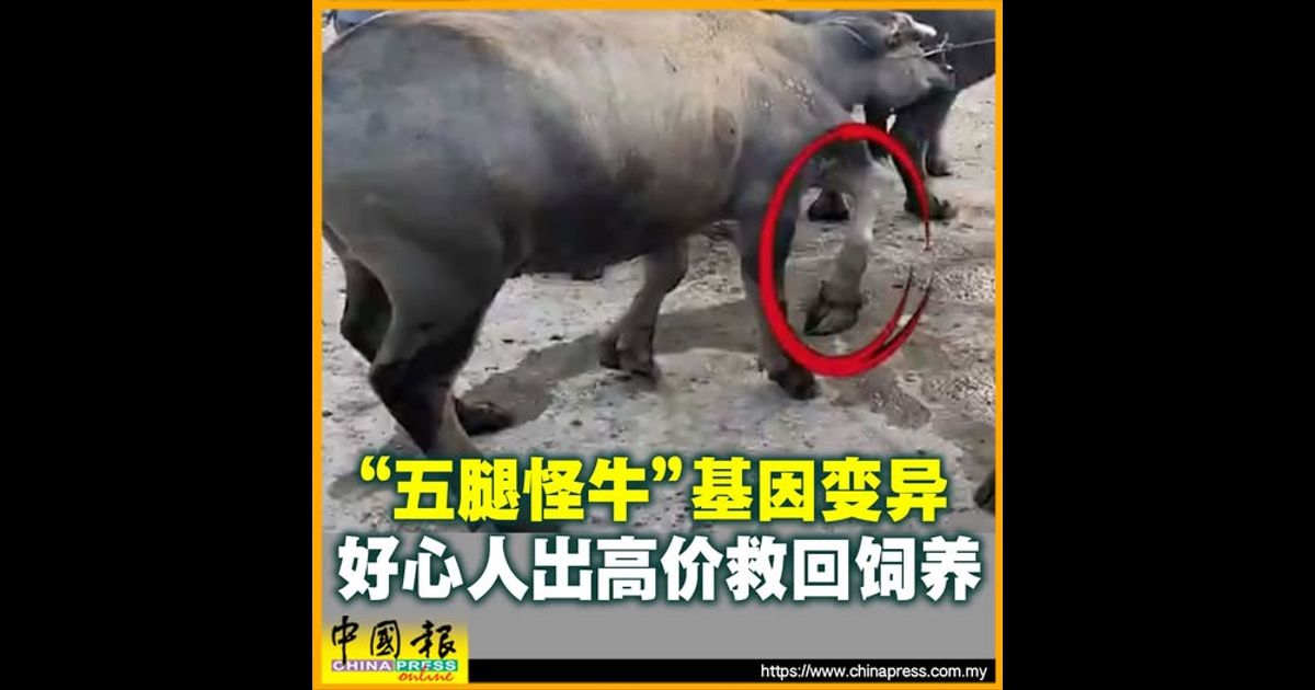 中国广东省阳江市一民网民周二发布影片表示,在当地市场上发现一头长着5条腿的“怪牛”,眼见这头牛要被宰杀,打算高价将其买下。