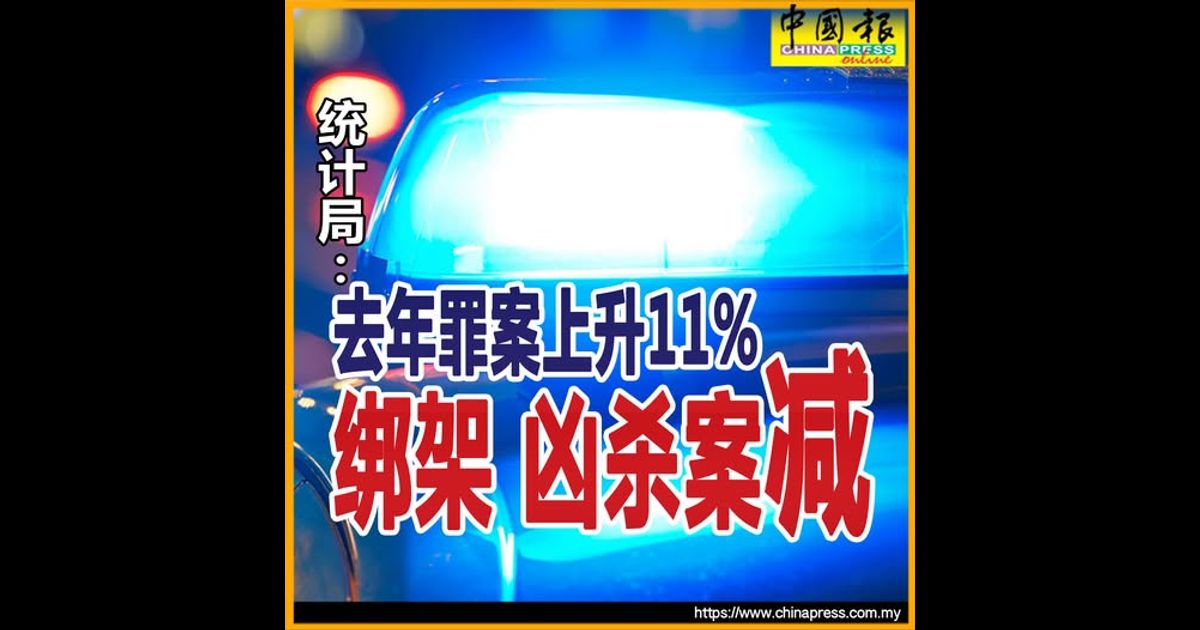 (吉隆坡16日讯)统计局数据显示,2024年大马犯罪指数上升11.1%,共录得5万8255宗案件,比2023年的5万2444起增加了5811宗。