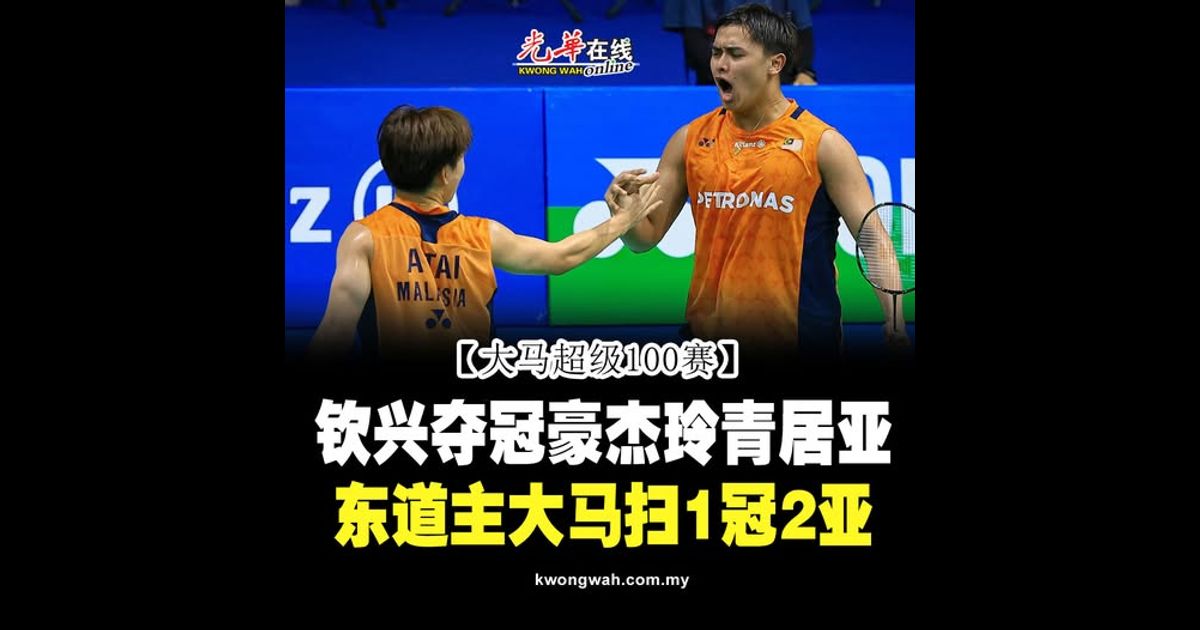 大马军团在大马超级100赛中拿下1冠2亚,其中戴伟钦/江凯兴在男双大马内战中击败自由人组合雷声豪/谢炜杰夺冠,而国羽女单黄玲青则不敌日本前世界冠军奥原希望,为大马拿下女单亚军。
