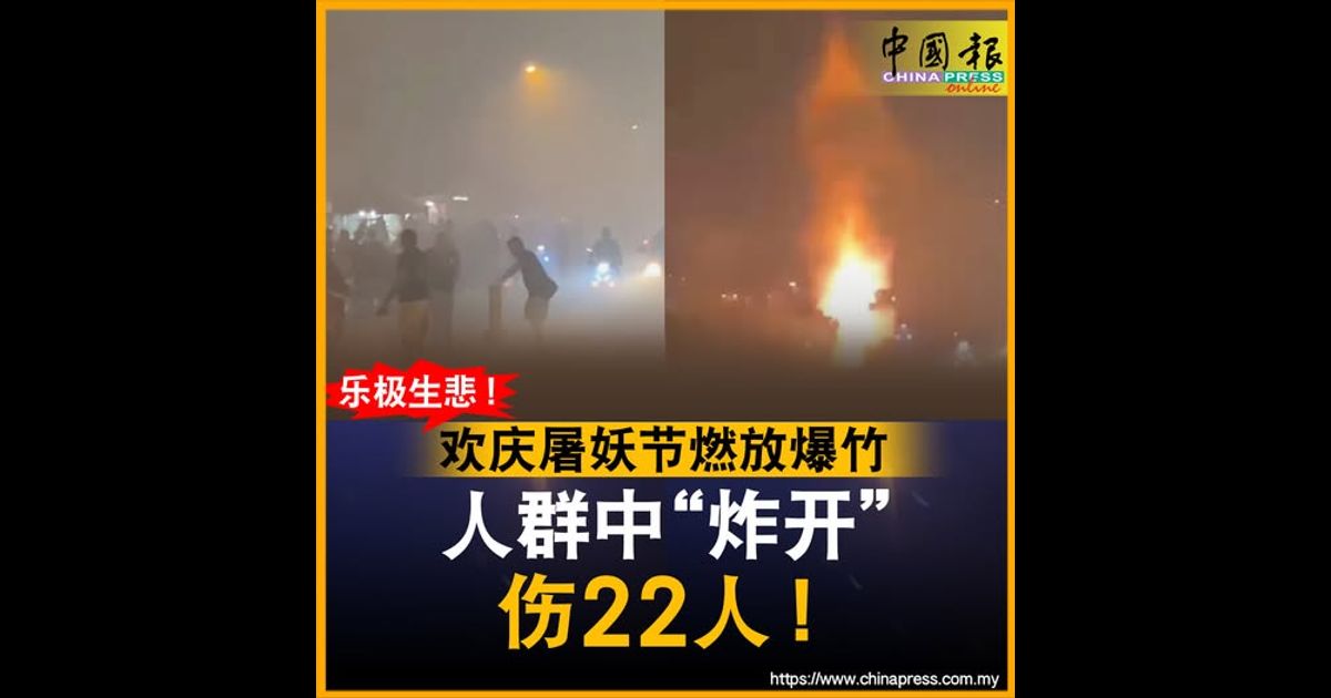 民众凌晨在路边燃放烟火欢庆屠妖节,引群众围观,岂料爆竹意外在人群中炸开,导致22人受伤,其中一名印裔男子伤势严重,头部伤口约5公分,余者受轻伤。
