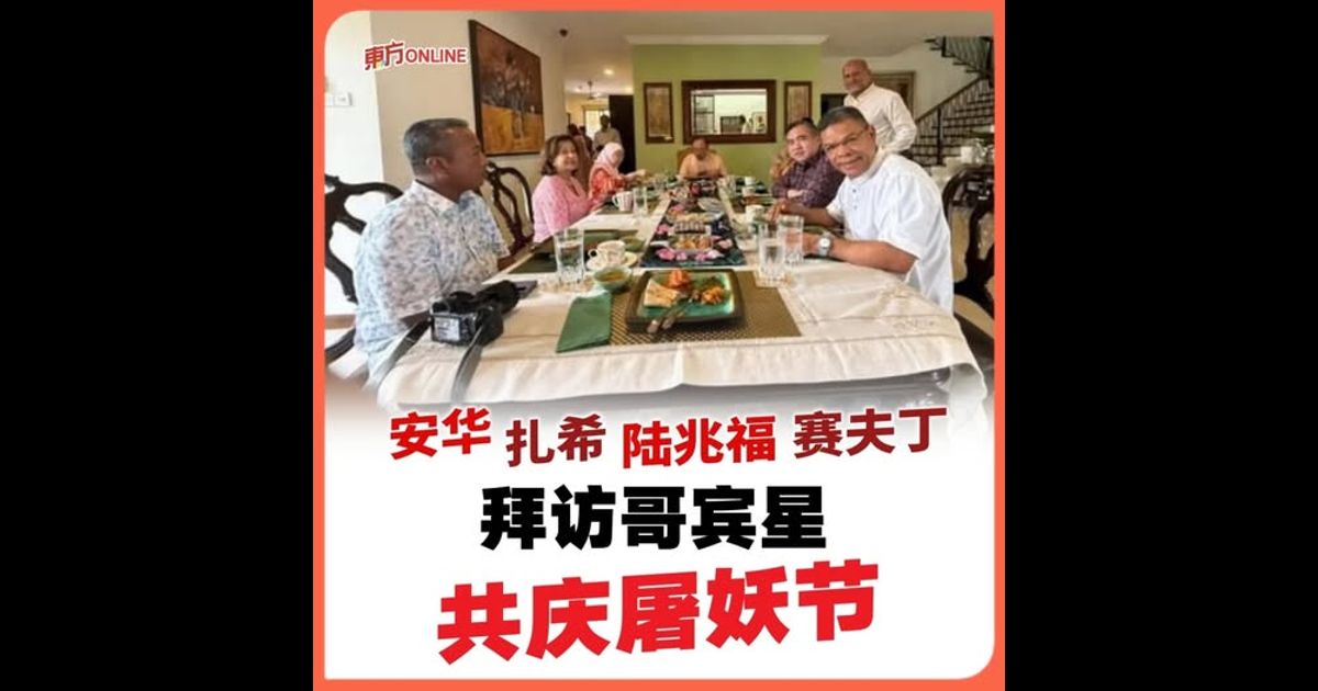 (吉隆坡20日讯)恰逢屠妖节的到来,首相拿督斯里安华与多名内阁部长一同前往数码部长哥宾星的住宅拜访,共享节日喜悦,展现大马多元族群和睦共处的精神。