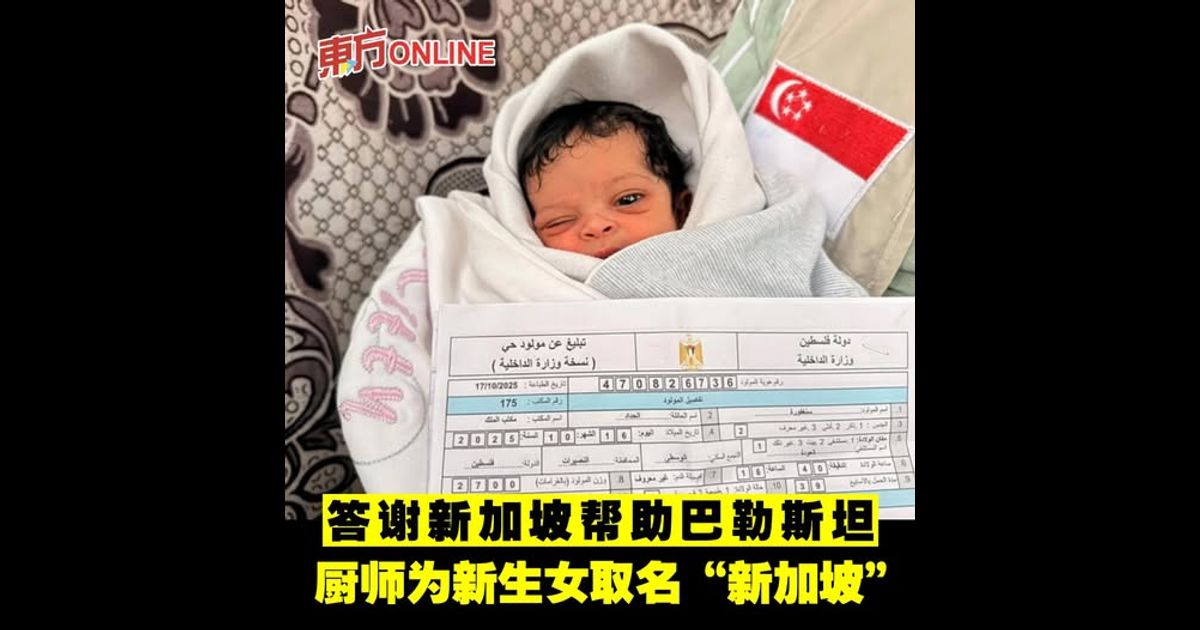 《新明日报》报导,慈善组织Love Aid Singapore在社媒发文,称该名女婴本月16日出生,她的父亲哈姆丹哈达在加沙的新加坡济贫厨房工作了两年。