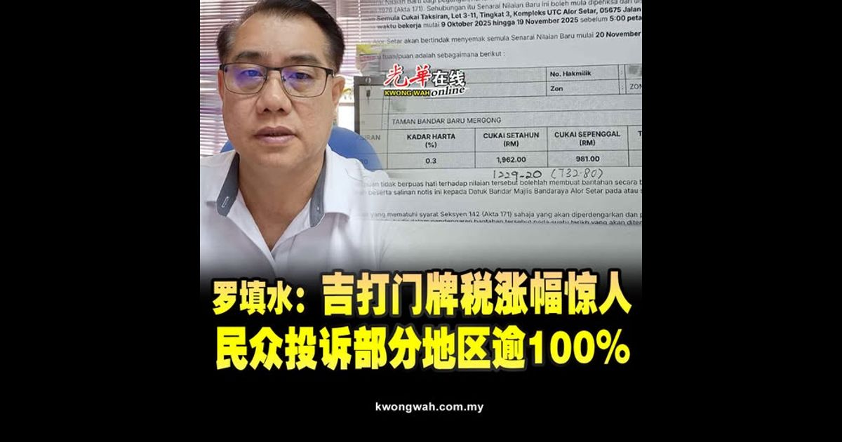 马华吉打州秘书罗填水指出,马华近期接获店主投诉,指门牌税涨幅惊人,部分地区的涨幅高达70%,甚至超过100%。