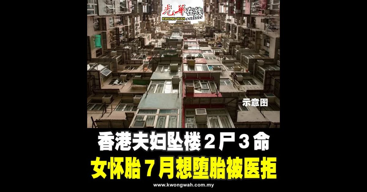 香港屯门19日清晨发生一起2尸3命的坠楼事件。一对夫妻从大兴邨的住所坠下轻生,皆当场死亡。