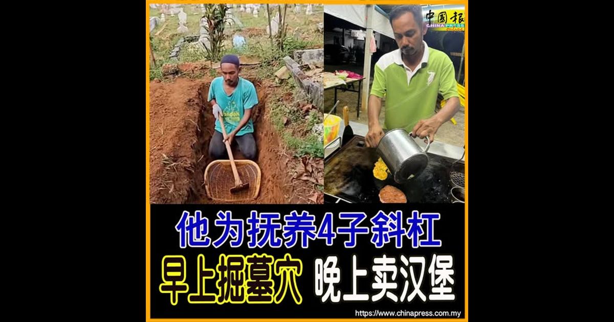 (吉隆坡20日讯)一名马来男子为了抚养4名孩子而身兼双职,白天成为掘墓人,夜晚则成为汉堡包小贩。