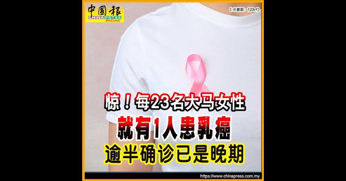 (加央21日讯)根据大马癌症登记局2017年至2021年报告,我国每23名女性,就有1人患有乳癌!