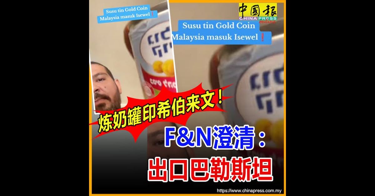 炼奶罐印希伯来文!F&N澄清:出口巴勒斯坦
