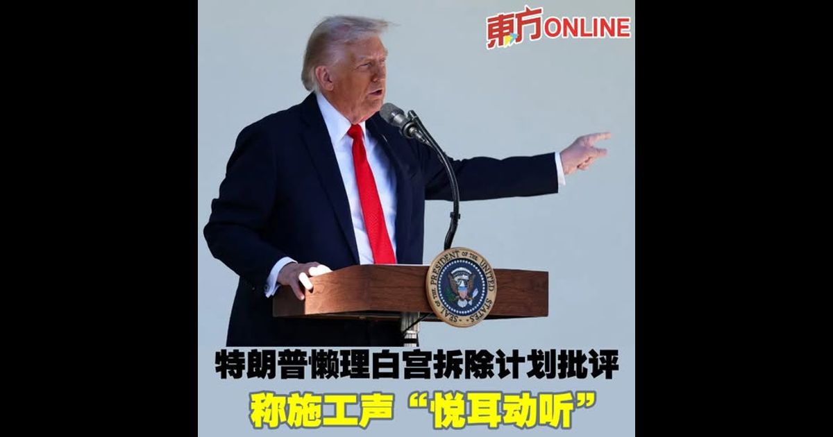 (华盛顿22日讯)美国总统特朗普当地时间周二对白宫部分建筑拆除计划的批评不以为然,还称施工声音“悦耳动听”。