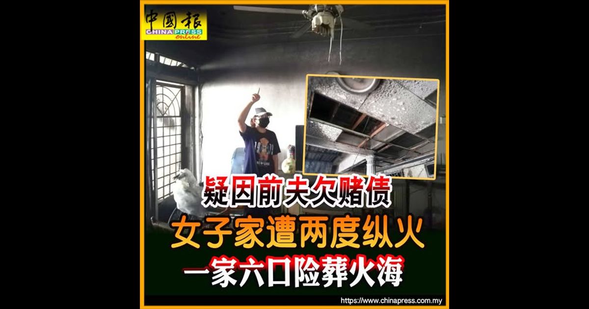 (马六甲22日讯)疑受前夫欠赌债牵连,女子共一家六口先后4次遭债主追债,其中两次住家更被纵火,吓得全家惊愕不已。