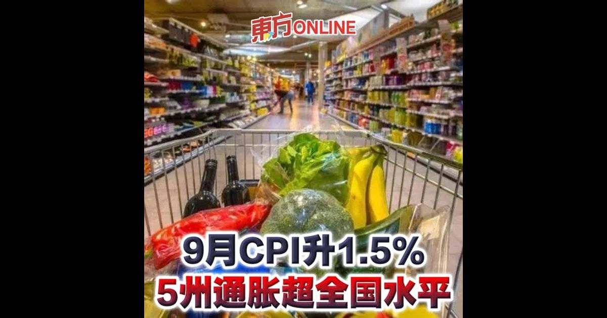 (吉隆坡22日讯)统计局今日公布数据,大马9月消费者物价指数(CPI)上升1.5%,至135.2点,略高于8月的1.3%。
