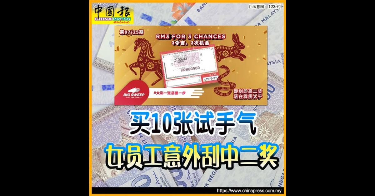 (吉隆坡21日讯)来自霹雳州太平的37岁女工谢女士,因一时兴起在早市购入10张大彩彩票,意外刮中“即刮即赢”5万令吉二奖奖金!