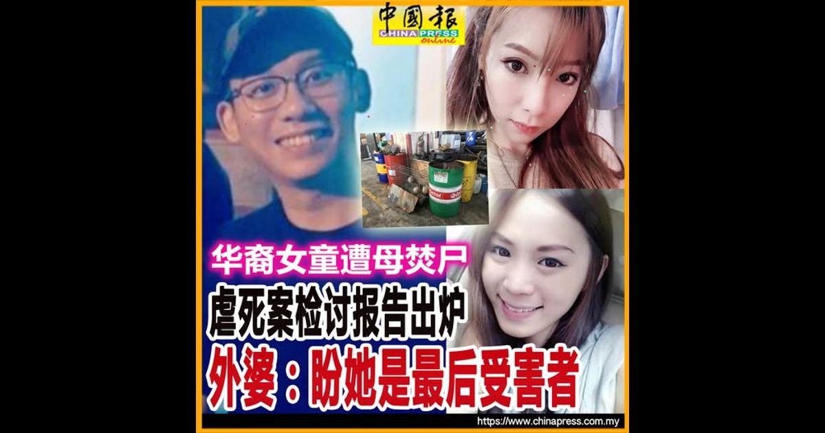 女童遭生母符丽萍(29岁)和男友王世祥(38岁)虐待13个月后,丧命于基里玛路的公寓内。两人事后连同女友人蔡偌诗(35岁)把尸体运到乌美的修车厂焚烧。