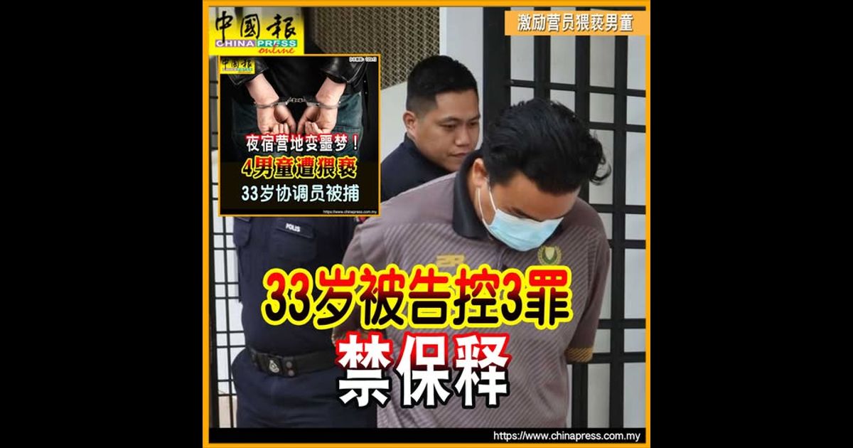 根据媒体早前报导,4名就读霹雳某小学的六年级男生,来槟参加激励营,并在晚间入睡时,遭一名33岁的营地男协调员猥亵。