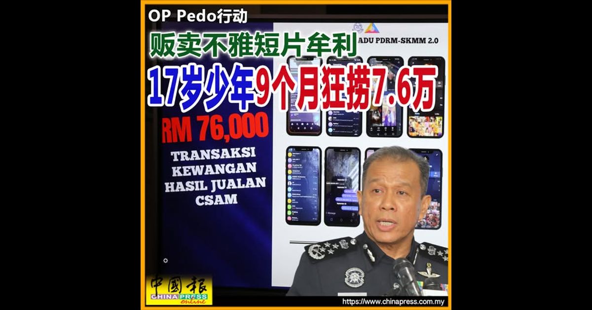 “每一部视频仅售30令吉至50令吉,其中也包括未成年性虐待材料(CSAM),这令警方开始担忧少年的道德水准。”