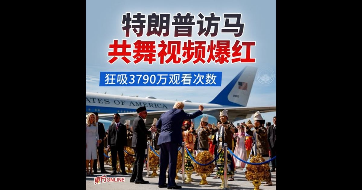 (吉隆坡27日讯)美国总统特朗普抵马时,与大马迎宾团的舞者共舞的视频在社交媒体上疯传,各平台观看次数更达3790万次。