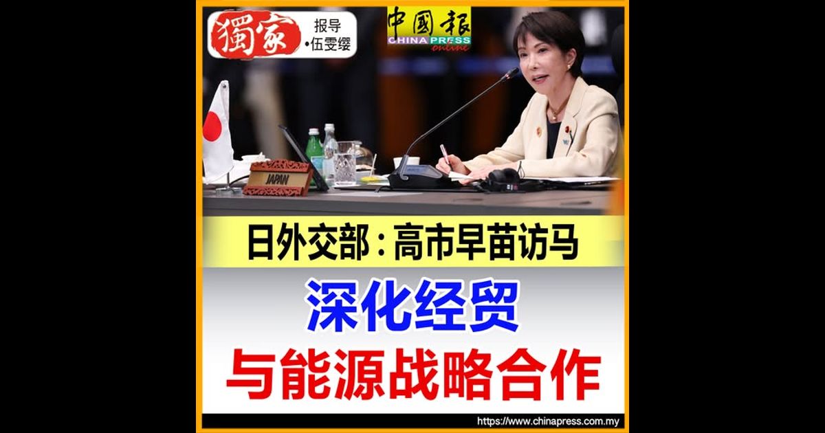 (吉隆坡27日讯/独家报导)日本首位女首相高市早苗上任后以大马作为首个国际行程,彰显日本视马来西亚为在东南亚推动自由贸易与能源转型的关键伙伴,并且放眼深化双边合作,全面铺陈未来经济与能源战略的新方向。