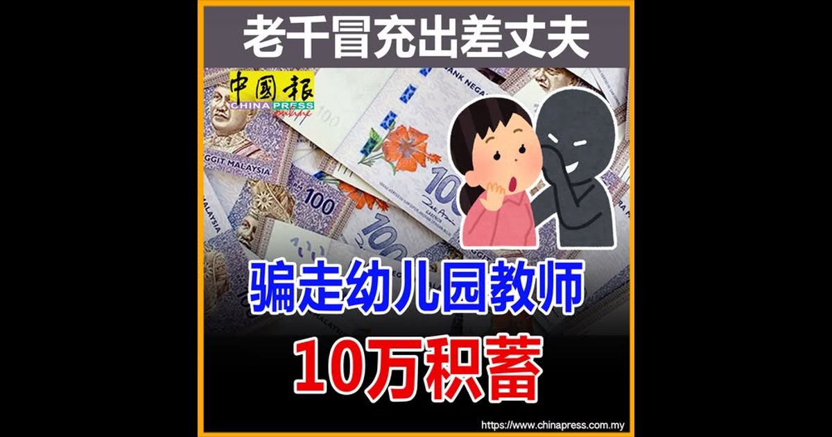 (新山27日讯)骗子冒充一名幼儿园教师远在中国出差的丈夫,谎称现有银行账户无法使用,要求教师代为转账协助处理生意事务,最终被骗走10万令吉的积蓄。