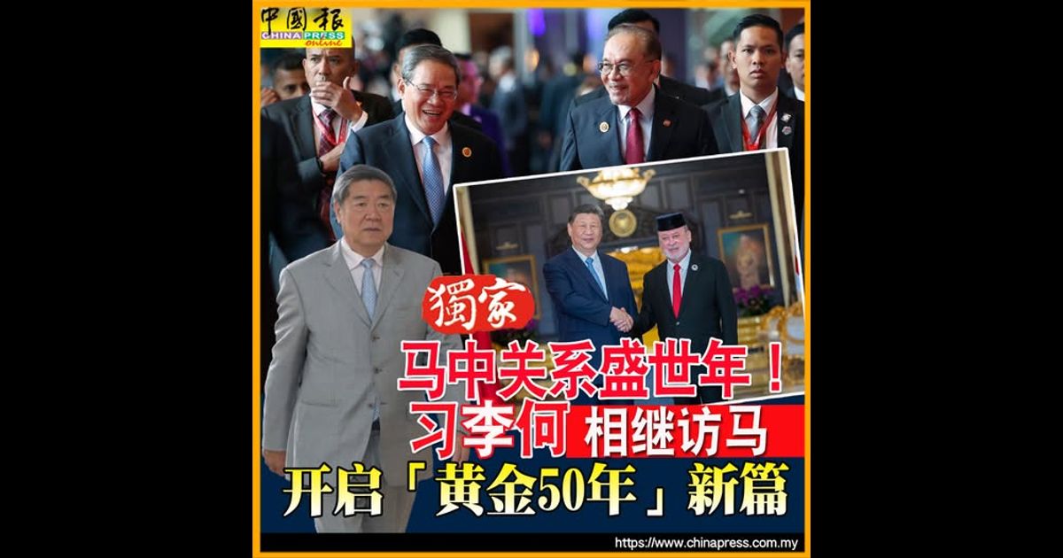 (吉隆坡28日讯/独家报导)今年是马中建交51周年,也是两国关系最为精彩的一年!短短数月之间,马来西亚先后迎来中国国家主席习近平、中国国务院总理李强、以及中国国务院副总理何立峰访马,规模盛大,前所未有。