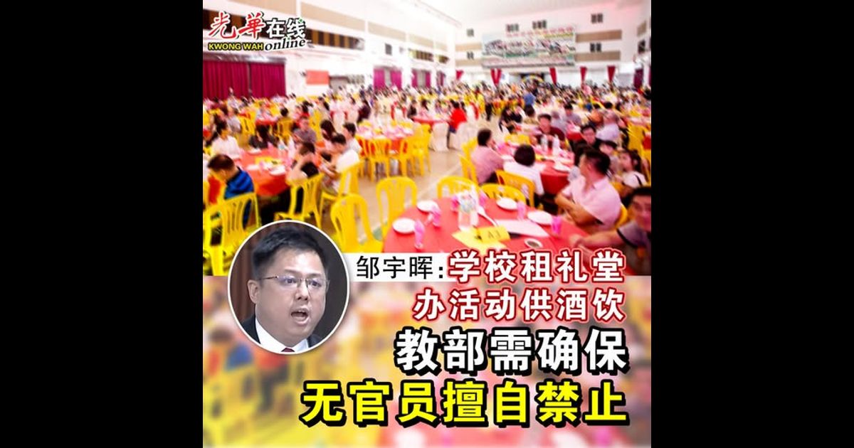 行动党劳勿国会议员邹宇晖促请教育部,需确保没有任何教育局官员擅自采取行动禁止学校,尤其是华小和国民型中学在课余时间租借礼堂,让社区举办含酒精饮品的活动。